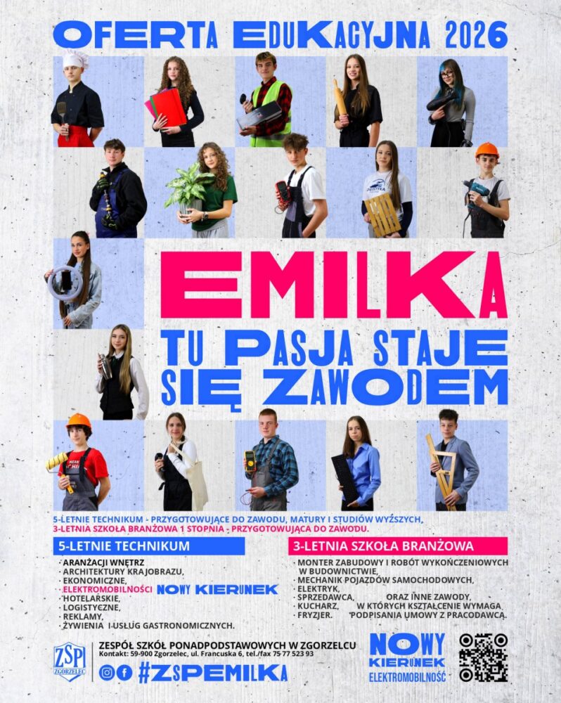 Jeśli jeszcze się zastanawiasz nad wyborem szkoły – przejrzyj naszą stronę internetową, szkolnego Facebooka –  ZSP Emilka Zgorzelec oraz Instagram dedykowany różnym kierunkom kształcenia: