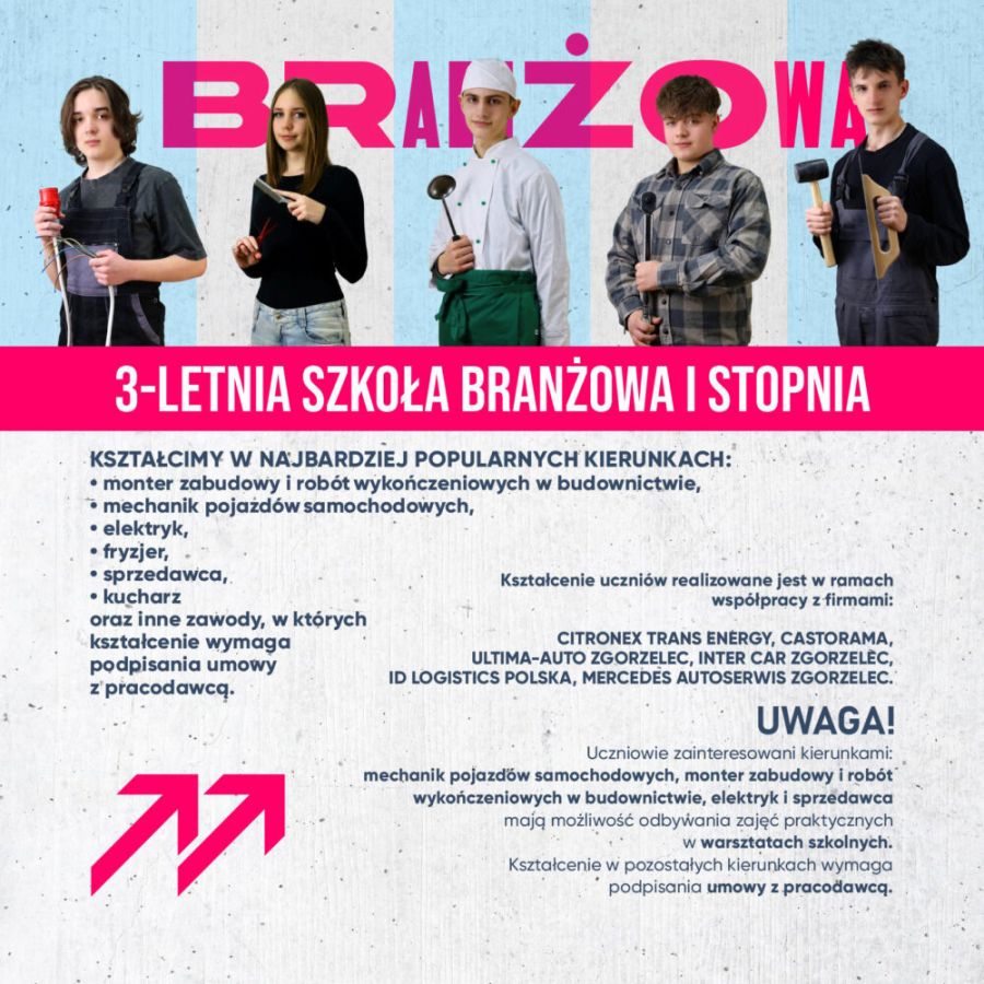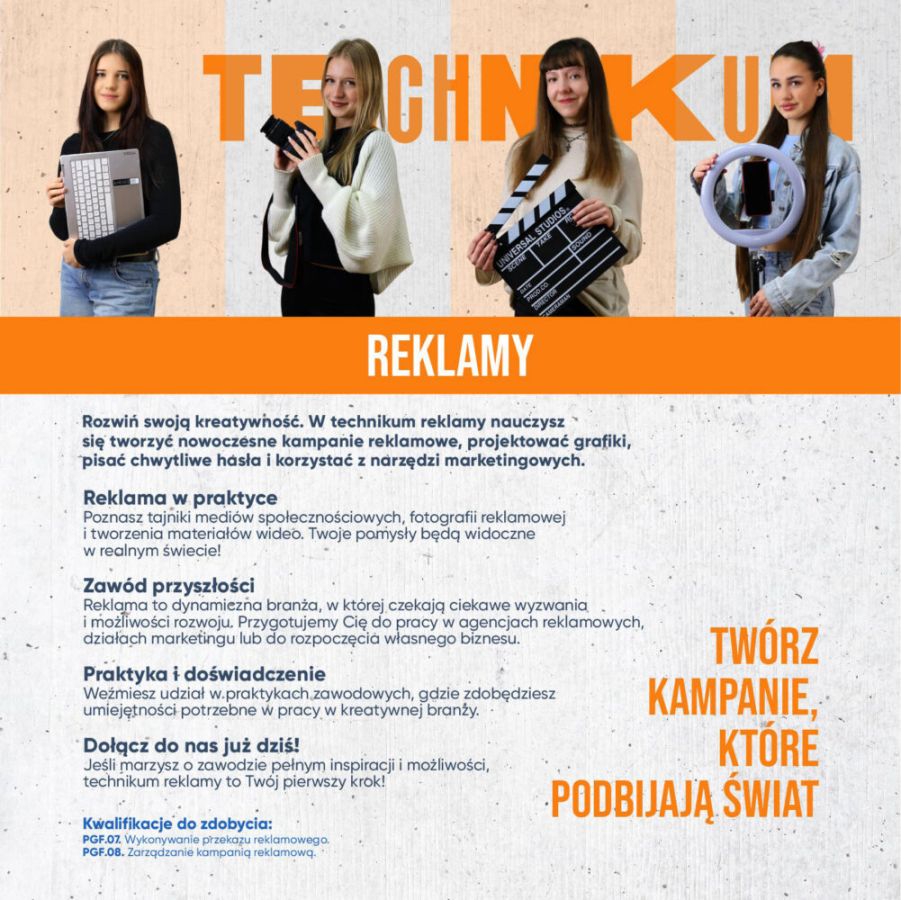 | Technik reklamy | J. polski, Matematyka, J. obcy, Informatyka | 75 | Wniosek, świadectwo SP, zaświadczenie OKE, 2 zdjęcia, zaświadczenie lekarskie |